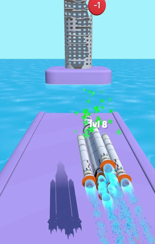 火箭破坏跑中文版作为近期热门的物理闯关类手游,其独特的火箭操控玩法与解压特效深受玩家喜爱。游戏以精准发射为核心机制,玩家需在三维空间中调整火箭飞行轨迹,既要规避悬浮障碍物,又要准确命中建筑核心区域,成功触发连锁爆破效果方可通关。