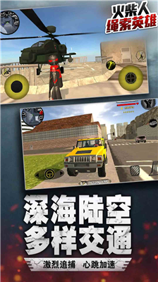 火柴人绳索英雄开放世界自由冒险是一款结合动作与策略的移动端游戏,以独特的绳索操控为核心玩法。游戏构建了包含现代都市、热带雨林和滨海景观在内的复合型地图场景,每个区域均融入动态天气系统与交互式机关设计。玩家通过虚拟摇杆控制火柴人角色,运用长按触控实现绳索精准发射与收缩位移,配合冲刺、跳跃等组合动作完成高空穿越与战术突袭。