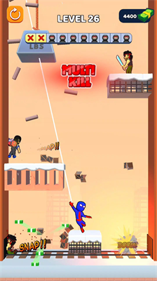 游戏构建了极具代入感的都市战场,玩家可通过发射特殊绳索实现三维空间移动,在应对复杂地形挑战的同时,还需运用策略性攻击手段消灭敌人。随着关卡推进将解锁电磁脉冲装置、震荡波发射器等特色武器,配合角色个性化装扮系统,打造专属战斗风格。