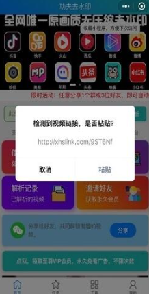 将先前复制的链接粘贴至输入框内,点击解析按钮后系统会自动识别媒体资源,整个过程通常不超过10秒