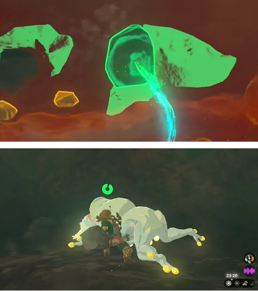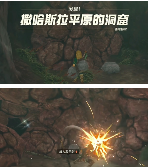 5、在次级洞穴中会遇到巨型岩块封路。此时需激活究极手能力进行物体操控,移开障碍物后需立即进入战斗状态,建议提前切换高攻速武器应对突袭的守护生物。