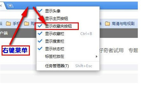 该收藏栏支持实时拖拽管理功能,用户可通过长按书签实现自由排序。若需查看完整收藏目录,在浏览器顶部导航栏右侧空白处单击右键,系统将展开完整的树状收藏夹列表。