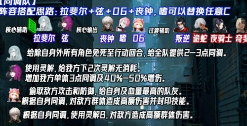 特殊功能位叛逆需配合拉斐尔使用,通过BUFF转移机制可将自身增益精准赋予主C角色。经典单核阵容推荐:弦+拉斐尔+叛逆+主战角色。