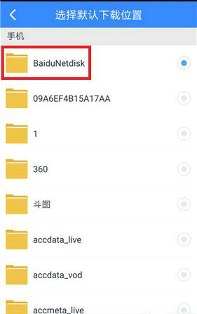 4、当前界面将展示预设存储目录,系统初始默认路径通常为手机内置存储的【BaiduNetdisk】文件夹