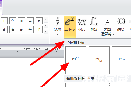 3、激活公式工具设计面板后,在"结构"区域找到上下标模块。这里提供单上标、单下标以及组合式上下标等六种模板样式,鼠标悬停时会有实时预览效果。选中所需模板后,在虚线框内分别输入主体内容和上下标字符。