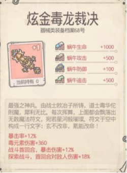 毒龙裁决作为版本T0装备,不仅提供9%毒元素加成,还附带3.2%暴击率提升。建议通过限时礼包分阶段获取,注意把握版本更新后的首周折扣期。