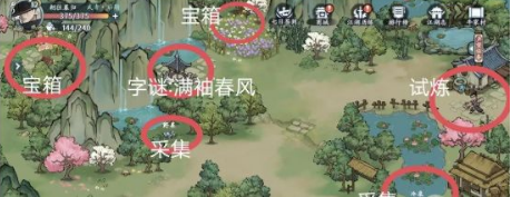 3、北坡竹林存在复合型点位,宝箱④采用双重加密机制,需先完成附近石碑拼图小游戏。采集事件④的晨露收集器悬挂在竹梢,推荐寅时三刻使用轻功获取。藏宝图①残片埋于观景台第三阶石缝,使用探宝罗盘可精确定位。