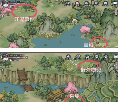 1、村口区域分布着初始资源点,宝箱①位于磨盘西北侧柳树下,需清除杂草可见机关锁。宝箱②藏在晾晒场竹筐堆后方,建议调整视角观察反光点。采集事件①的药草生长在断桥裂缝处,采集事件②的矿石需用铁镐敲击巨石。凉亭石柱刻有「四时和煦拂人面」字谜,输入「满袖春风」可激活隐藏奖励。