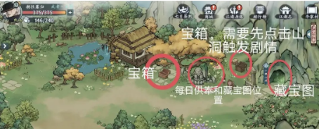 5、后山秘境包含动态地形机制,宝箱⑥每日辰时会在三处石阵间轮换。宝箱⑦需激活全部五座图腾柱才显现,注意观察地面符文走向。藏宝图②残片隐匿于瀑布水帘后,角色需达到寒暑不侵境界方可穿越激流。