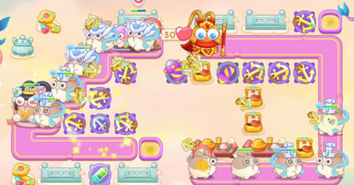 3:遭遇突发攻势时需灵活切换攻击目标,长按屏幕可临时解除自动锁定功能。特别注意高速移动的滑板兔军团,建议预留冰冻星或减速风扇进行针对性布防;
